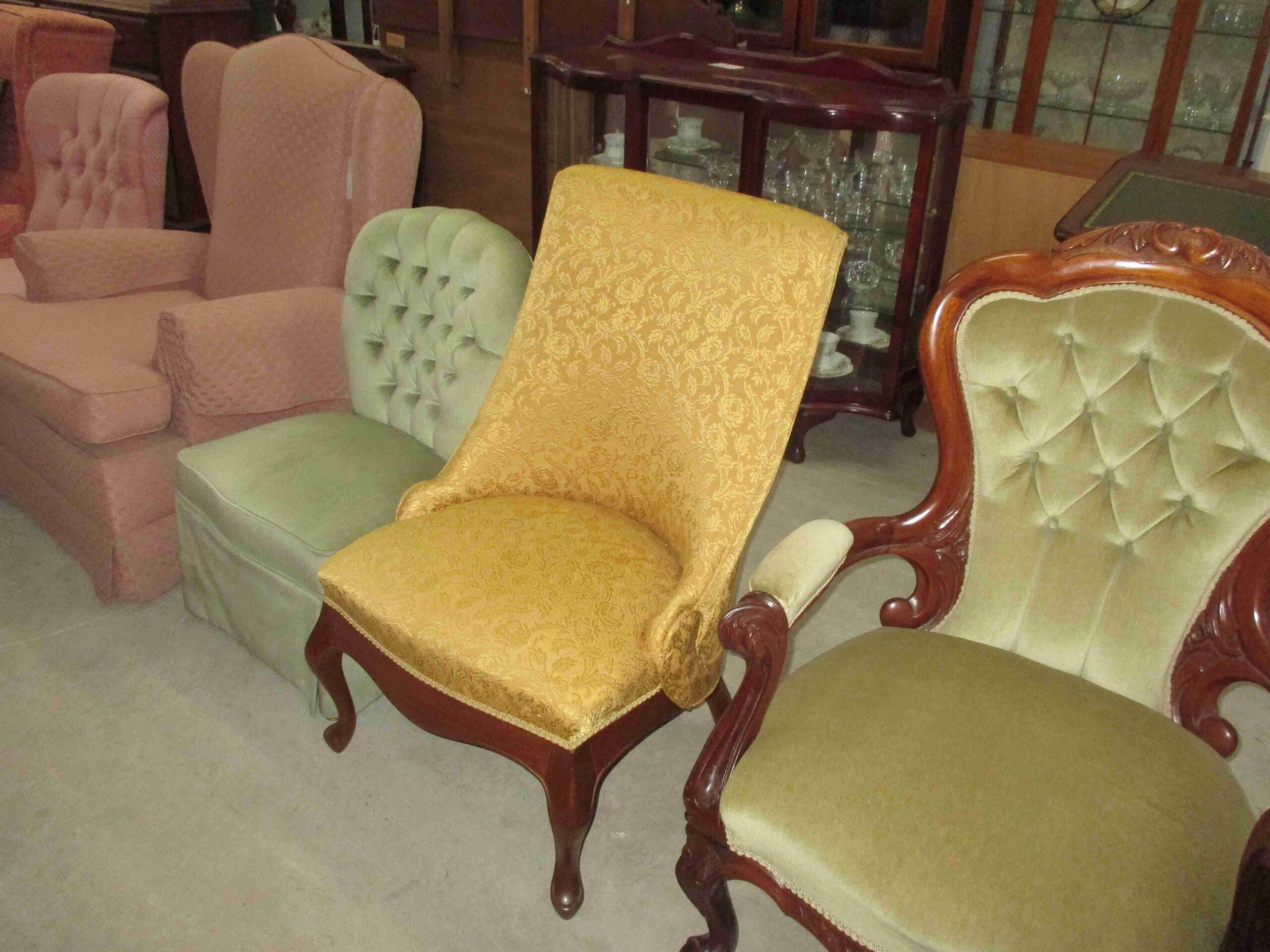 French Provincial Style , Brocade Covered Bedroom Chair , size 590 x 650 x 890 high