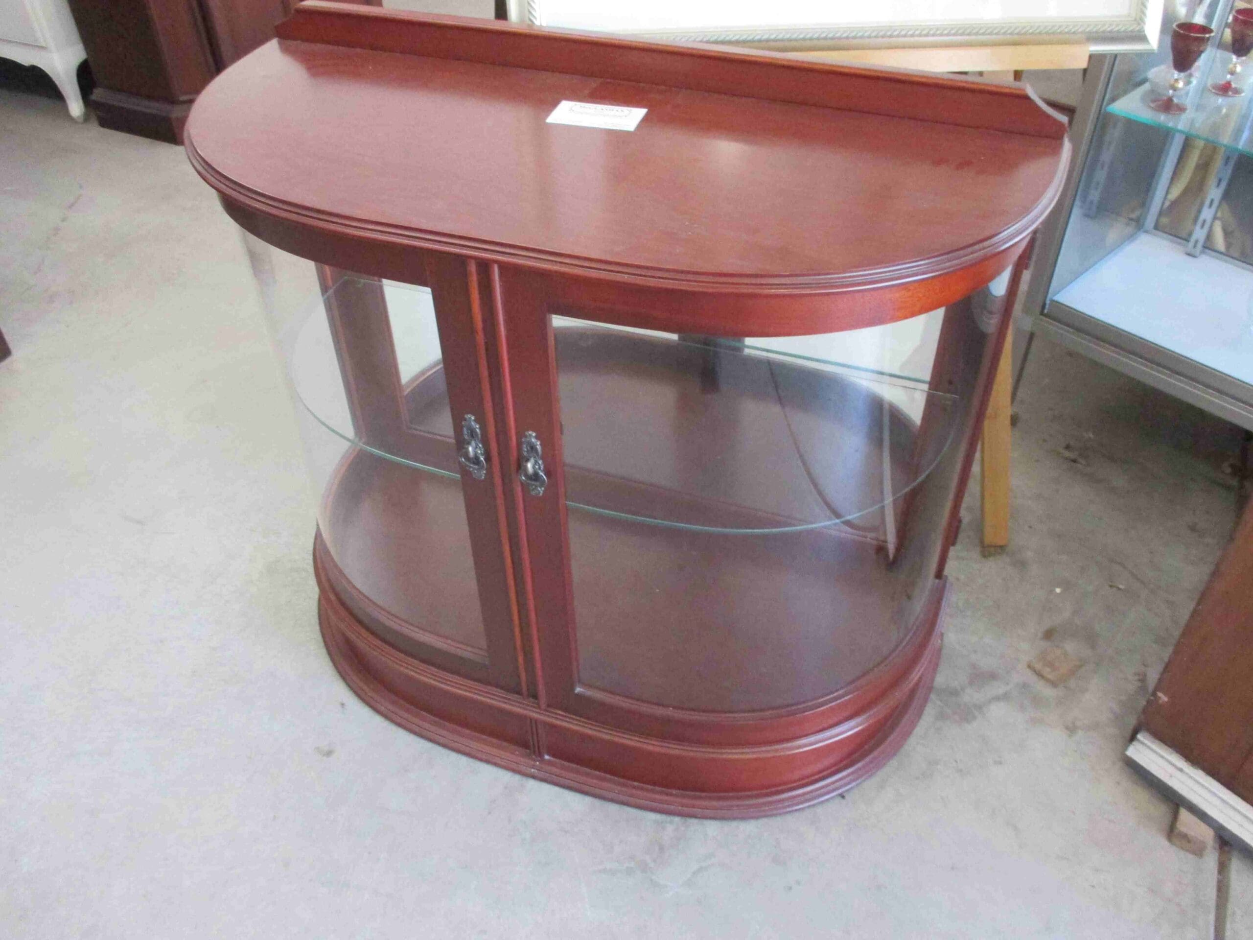 Half Round , Mirror Backed Display Cabinet , Mahogany Finish , size 920 x 400 x 770 high